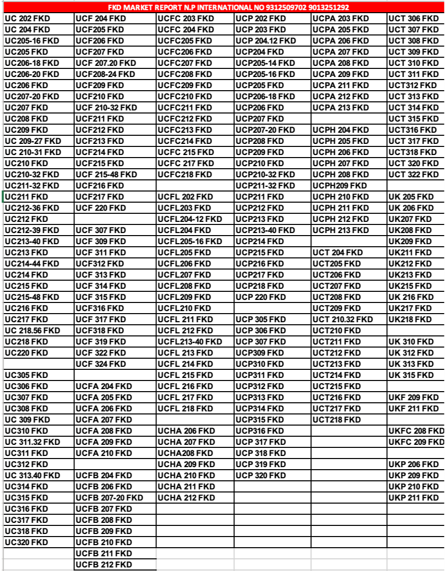 Including UCT 210.32 FKD, UCT 213 FKD, UCT 215 FKD, and more
